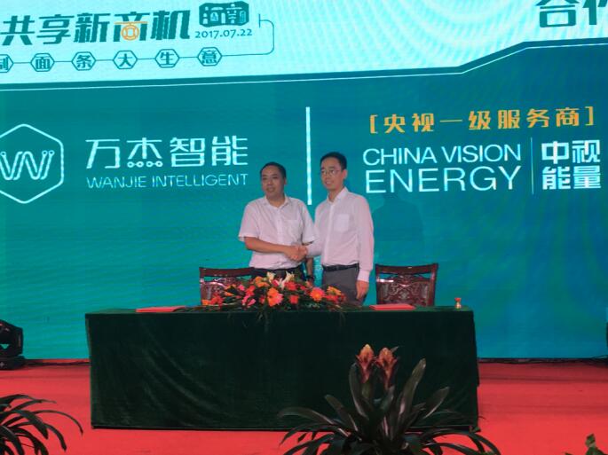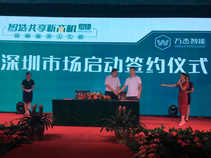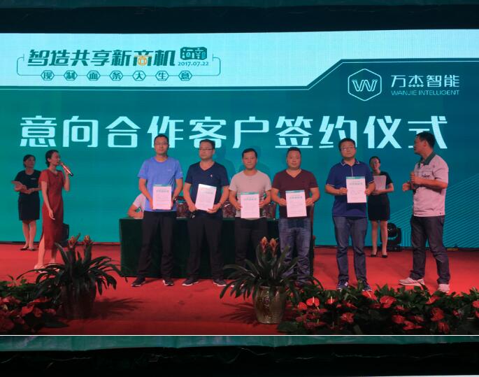 晚宴即將開始時,仍然有很多意向合伙人想要加入萬杰智能鮮面機項目中來,會務(wù)組因此臨時調(diào)整會議流程,推遲晚宴開始時間,為意向合伙人留出更多簽約時間,最終,萬杰智能成功與30余位意向合伙人簽署了意向合作書。 萬杰智能與中視能量(央視一級服務(wù)商)簽訂戰(zhàn)略合作協(xié)議 萬杰智能深圳市場正式啟動儀式 城市合伙人簽約儀式